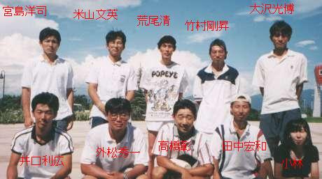 1999年 私達平和時計テニスクラブは、今年初めて参加しました。部員は20数名でやっと実業団に参加出来るレベルとなりました。 最近はチーム全体のレベルアップをはかるため初心者中心の練習を行なっています。 今後実業団テニスを通じ団体戦を勝抜くチームワークを身に付けたいと思っています。